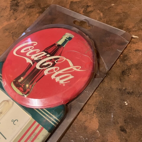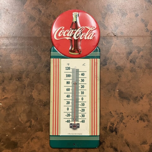 商品 » 商品ジャンル » コカコーラ・グッズ » 看板 » Coca-Cola(コカコーラ)ヴィンテージスタイル・サーモメーター「ボタンサイン」 Coca-Cola(コカコーラ)ヴィンテージスタイル・サーモメーター「ボタンサイン」 品番:COC7708 1点在庫有り ¥10,780 Coca-Cola(コカコーラ)のヴィンテージ・スタイルのメタル製の温度計です。20年以上前に1950年代の温度計を基にアメリカでリプロダクト(複製)された、日本未発売のあまり見かけないレアな逸品です。ヴィンテージ感を出す為、表面にヨゴレ加工が施されています。パッケージにワレなどのダメージは見られますが、未使用のデッドストックです。アメリカ直輸入品。(サイズ:約H39.5×W14×D1cm)