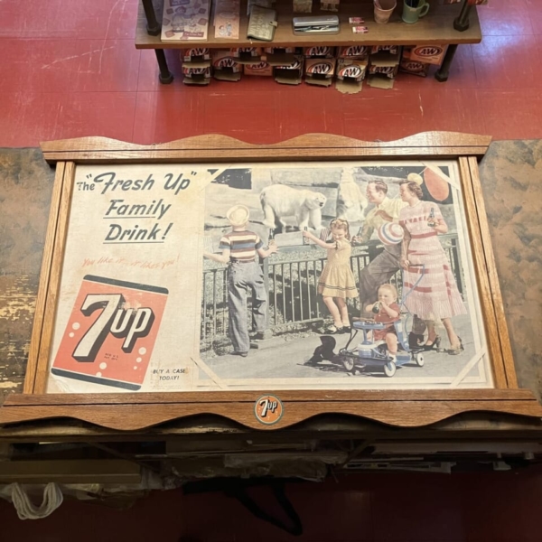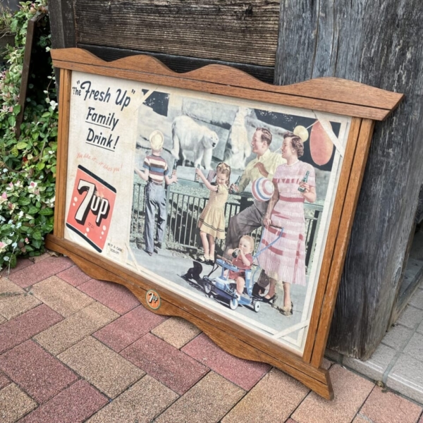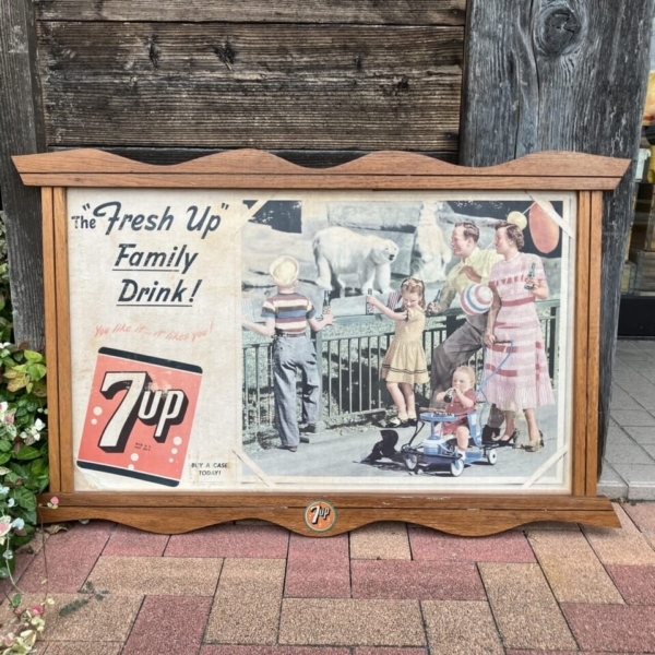 商品 » 商品ジャンル » カンパニー・グッズ » ドリンク系 » 7up(セブンアップ)ヴィンテージ・カードボードサイン 1950 「オリジナル・フレーム入り」 7up(セブンアップ)ヴィンテージ・カードボードサイン 1950 「オリジナル・フレーム入り」 品番:SEV1612 1点在庫有り ¥63,800 7up(セブンアップ)のヴィンテージの厚紙製の看板です。1950年に販売店のディスプレイ用に作られた物で、オリジナルの木製フレームに収められた入手困難な激レアな逸品です。フレームに経年による多少のスレやカードボードに紙のうねりや色褪せ等が見られますが、年代の割に程度は良好です。。アメリカ直輸入品。(フレーム・サイズ:約H64.5×W100.5×D2.5cm カードボード・サイズ:約H52.5×W86cm) ※こちらは大型商品の為、代引発送は出来ません。