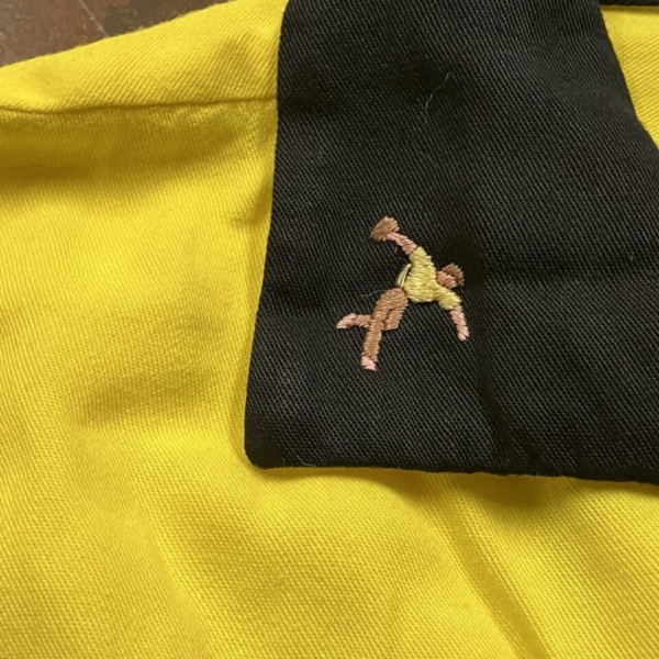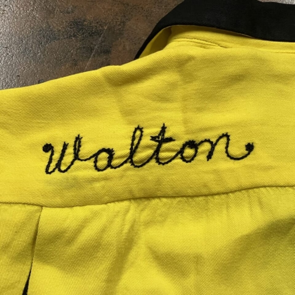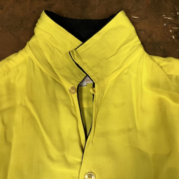 King Louie(キングルイ)のヴィンテージのボーリングシャツです。1960年代の白タグで、ネーム、バック共にチェーン刺繍が施さた入手困難なレアな逸品です。素材はレーヨンで黄色ボディに黒色の襟とアクションプリーツが切替になっています。若干の薄ジミやシワなどは見られますが、目立つヨゴレやダメージは無く使用感の少ない良好な1着です。アメリカ製。サイズ:L(肩幅/41 身幅/58 着丈/69 袖丈/23cm)