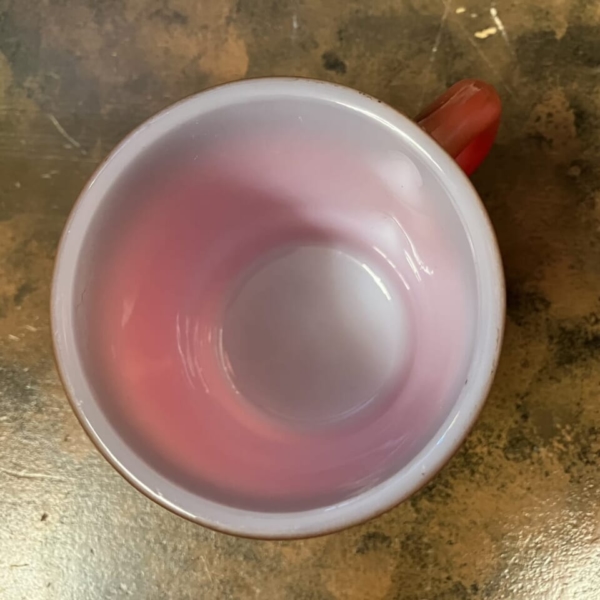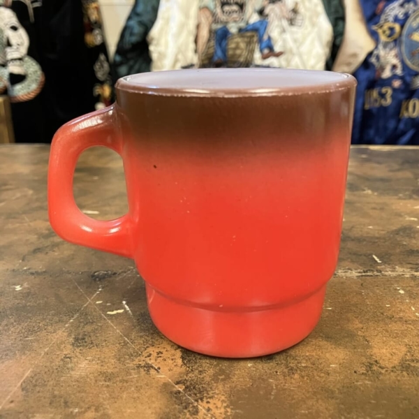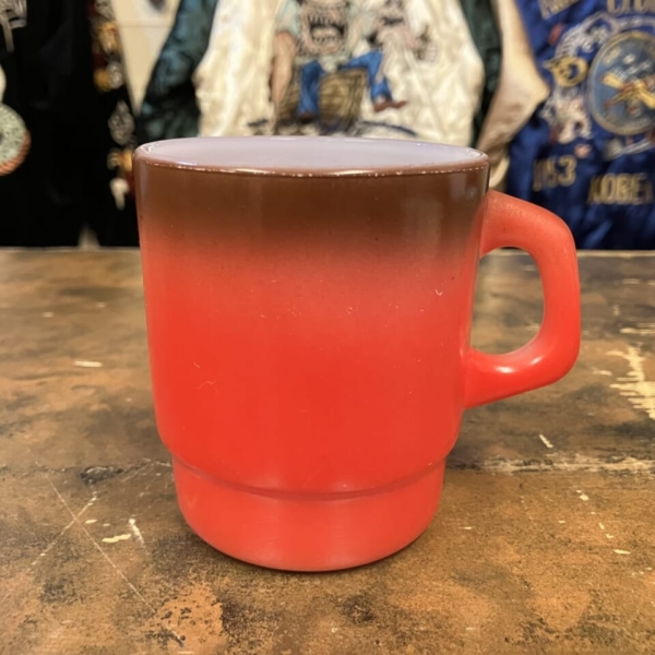 商品 » 商品ジャンル » ファイヤーキング他 » カラー » Fire-King(ファイヤーキング)スタッキング 茶・赤 Fire-King(ファイヤーキング)スタッキング 茶・赤 品番:fkcl016 1点在庫有り ¥3,960 Fire-King(ファイヤーキング)の茶・黄土のグラデーションのスタッキング・マグです。ファイヤーキングの中でも積み重ね(スタッキング)のできるフォルムが特徴の定番マグカップで、普段使いにも最適です。表面に細かいスレ等は見られますが、それ以外はワレ、カケ無く内側はツヤのあるグッド・コンディションです。アメリカ直輸入品。(サイズ:H8.8×W10.3×φ7.7cm)