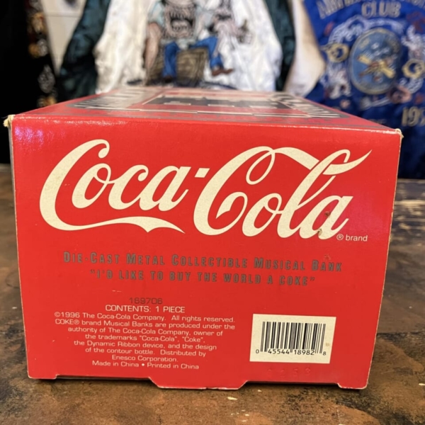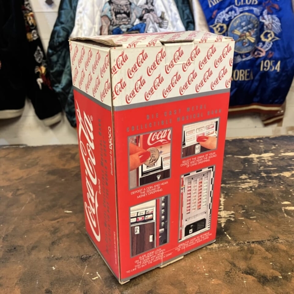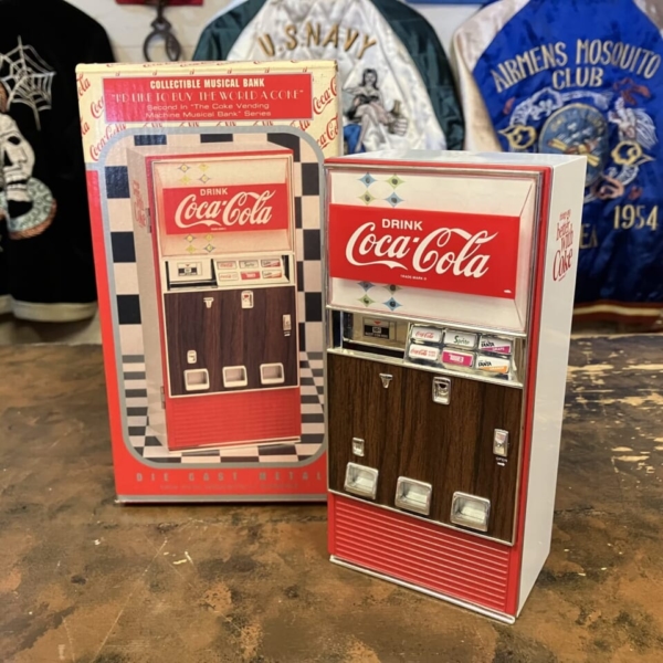 商品 » 商品ジャンル » ヴィンテージ・グッズ » 玩具 » Coca-Cola(コカコーラ)ミュージカル・コインバンク「カン・ベンディングマシーン」 1996 Coca-Cola(コカコーラ)ミュージカル・コインバンク「カン・ベンディングマシーン」 1996 品番:COC5320 1点在庫有り ¥10,780 Coca-Cola(コカコーラ)の1960年代の缶ジュースの自動販売機型をしたダイキャスト・メタル製の貯金箱です。コインを投入したり、ボタンを押すと効果音やライトが点灯し、扉を開けるとアメリカの「コカコーラのCMソング」が流れます。1996年に発売された物で、今では入手困難なとてもレアな逸品です。使用に伴う細かいスレやヨゴレ、箱に傷み等は見られますが、正常に作動いたします。アメリカ直輸入品。(サイズ:約H19×W9×D6cm)