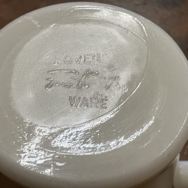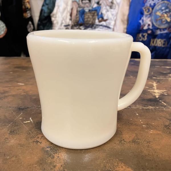 商品 » 商品ジャンル » ファイヤーキング他 » ジェダイ他 » Fire-King(ファイヤーキング)アイボリー シェービング 1950s Fire-King(ファイヤーキング)アイボリー シェービング 1950s 品番:fkjd016 1点在庫有り ¥7,480 Fire-King(ファイヤーキング)のアイボリーのシェービング・マグです。1950年代の別名フラットボトムと呼ばれている物で、通常のDハンドルと比べ底が平らな形状をした初期型のDハンドル・マグです。ボトム付近に製造上のヘアラインが数か所見られますが、ワレ、カケ無くツヤがあり使用感の無いニアミント・コンディションです。アメリカ直輸入品。(サイズ:H8.7×W10.5×φ8.4cm)