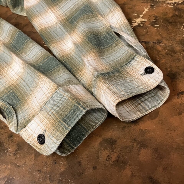 商品 » 商品ジャンル » 服飾小物雑貨 » シャツ » SEARS(シアーズ)ヴィンテージ・プリントネルシャツ グリーン×ブラウン×ホワイト 1970s XL位 SEARS(シアーズ)ヴィンテージ・プリントネルシャツ グリーン×ブラウン×ホワイト 1970s XL位 品番:clsh044 1点在庫有り ¥11,880 SEARS(シアーズ)のヴィンテージのプリントネルシャツの古着です。詳細不明ですが、おそらく1970年代の50%ポリエステル50%コットンのアメリカ製で襟芯の入った今では入手困難なレアな逸品です。経年による表面の毛羽立ちやタグが取れかかっていてプリントが消えているなど使用感は見られますが、目立つ大きなダメージやヨゴレの無い良好な一着です。アメリカ直輸入品。サイズ:不明(肩幅/50 身幅/66 着丈/77 袖丈/62cm)