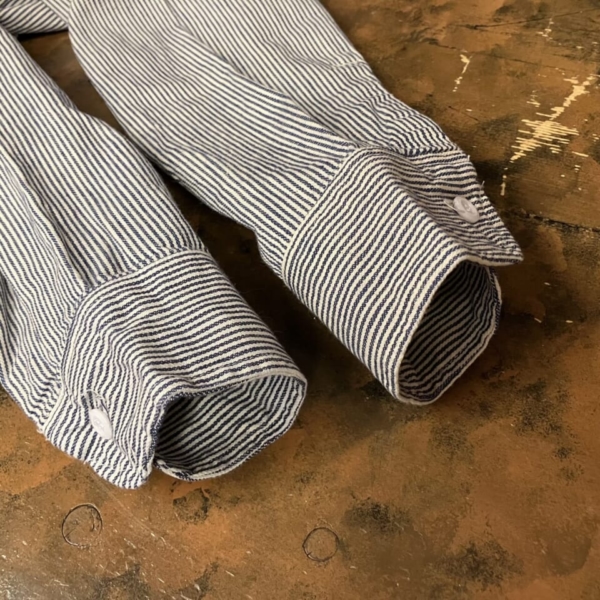 商品 » 商品ジャンル » 服飾小物雑貨 » シャツ » Prentiss(プレンティス)ヴィンテージ・ヒッコリーハーフジップシャツ 1980s S Prentiss(プレンティス)ヴィンテージ・ヒッコリーハーフジップシャツ 1980s S 品番:clsh040 1点在庫有り ¥10,780 Prentiss(プレンティス)のヴィンテージの長袖ヒッコリーストライプのワークシャツです。1980年代頃のハーフジップシャツで、入手困難なレアな逸品です。素材は100%コットンで、ペン刺しフラップポケットや「TALON」ジッパーが使われています。多少の使用感は見られますが、目立つヨゴレやダメージの無い良好な一着です。アメリカ直輸入品。サイズ:S(肩幅/44 身幅/54 着丈/81 袖丈/631.5cm)