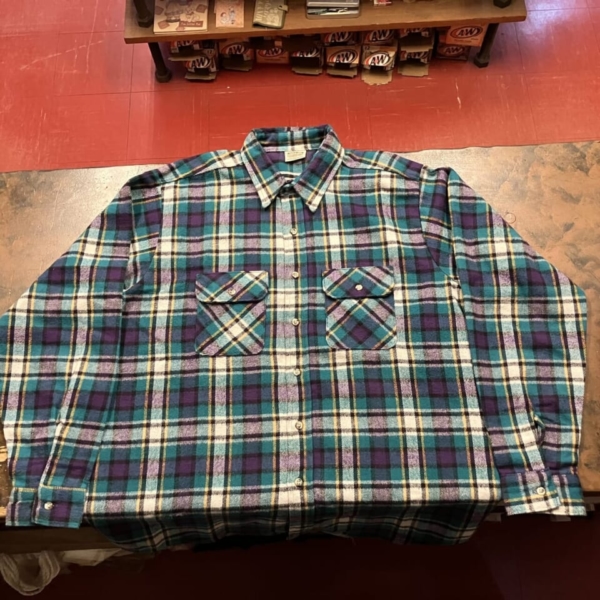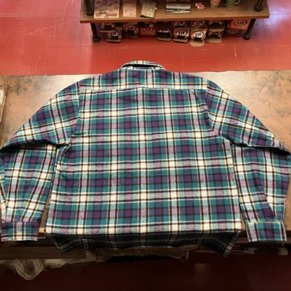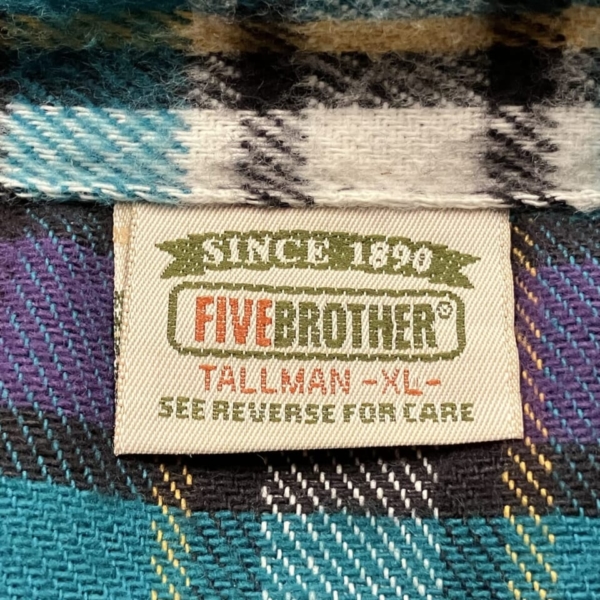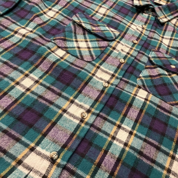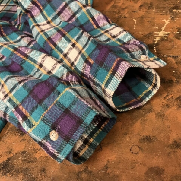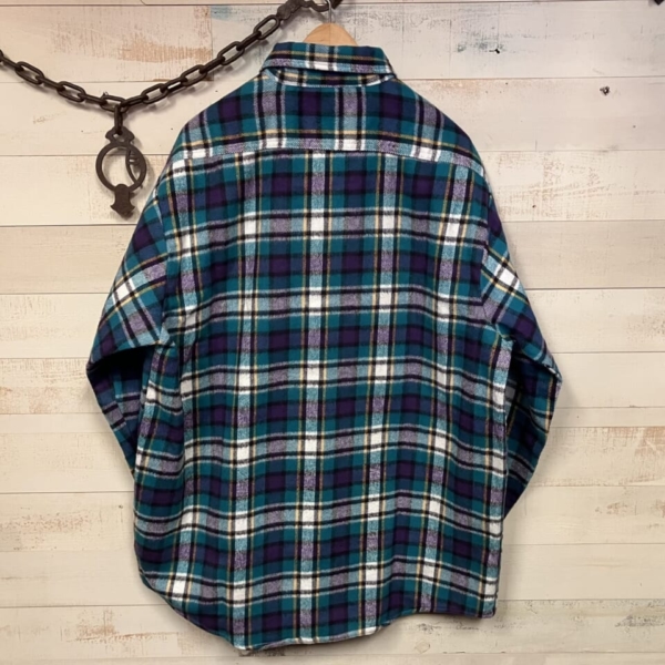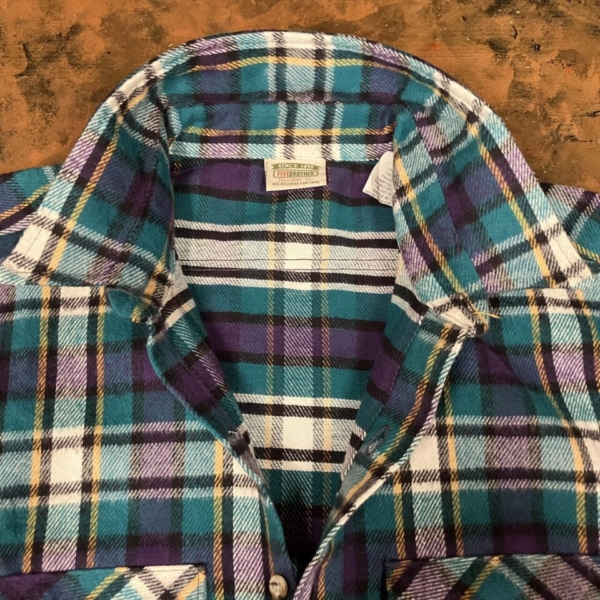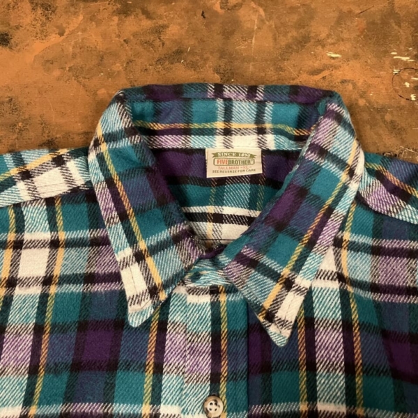 商品 » 商品ジャンル » 服飾小物雑貨 » シャツ » FIVE BROTHER(ファイブブラザー)ヴィンテージ・ヘビーネルシャツ ブルー×パープル×ホワイト 1990s XL TALL FIVE BROTHER(ファイブブラザー)ヴィンテージ・ヘビーネルシャツ ブルー×パープル×ホワイト 1990s XL TALL 品番:clsh091 1点在庫有り ¥9,680 FIVE BROTHER(ファイブブラザー)のヴィンテージのヘビーネルシャツの古着です。1990年代の物で、今では入手困難なレアな逸品です。目立つヨゴレやダメージは無く、殆ど使用感の見られない良好な一着です。アメリカ直輸入品。サイズ:XL TALL(肩幅/52 身幅/65 着丈/84.5 袖丈/66cm)