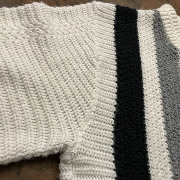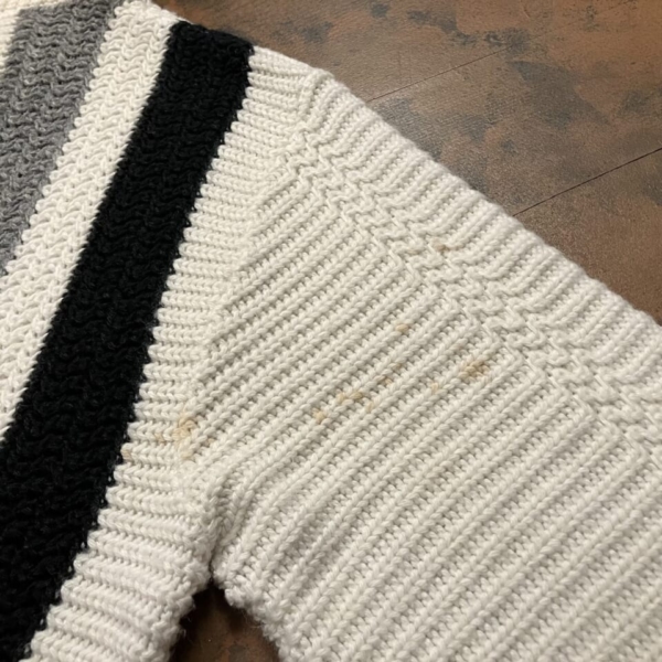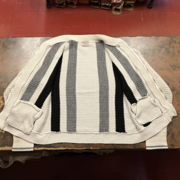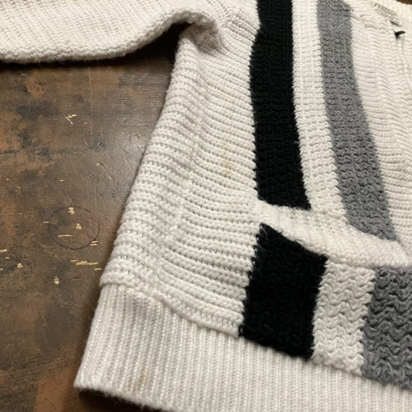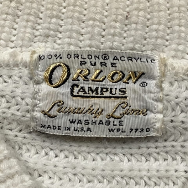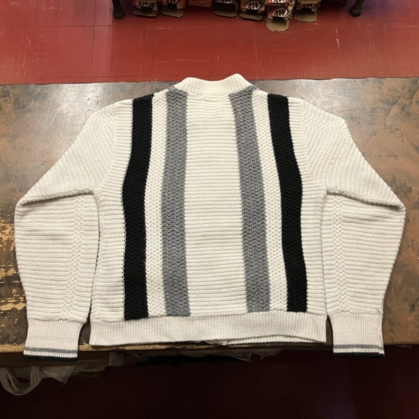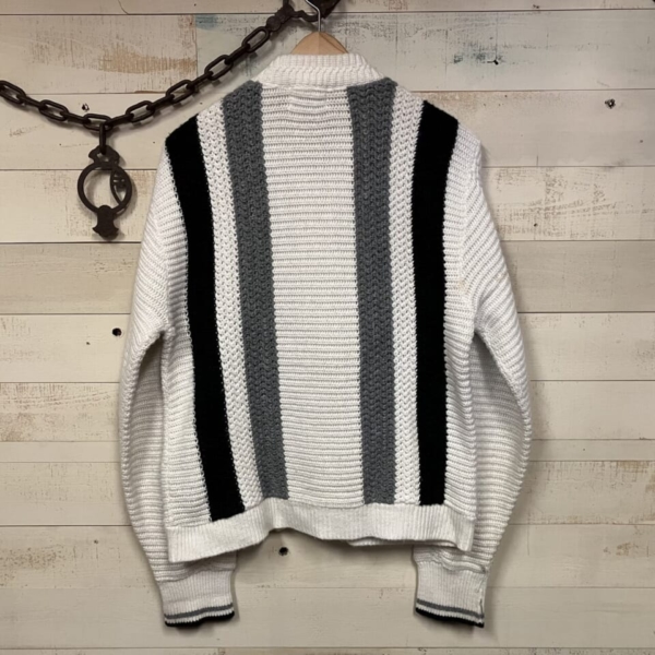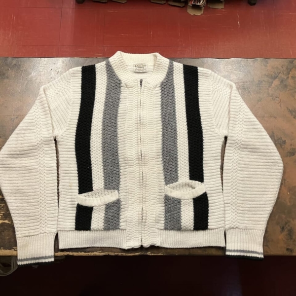 商品 » 商品ジャンル » 服飾小物雑貨 » カットソー(T-シャツ、スウェット等) » CAMPUS(キャンパス)ヴィンテージ フルジップ・カーディガン 1960s M位 CAMPUS(キャンパス)ヴィンテージ フルジップ・カーディガン 1960s M位 品番:clsh077 1点在庫有り ¥30,800 CAMPUS(キャンパス)のヴィンテージのフルジップ・カーディガンの古着です。1960年代のアクリル100%のセーターで、白ベースに黒とグレーのラインが入った入手困難なレアな逸品です。使用に伴う多少のシミ汚れやホツレなどはありますが、目立つ大きなダメージは無く年代の割には良好な一着です。アメリカ直輸入品。サイズ:不明(肩幅/47 身幅/53 着丈/58 袖丈/63 cm)
