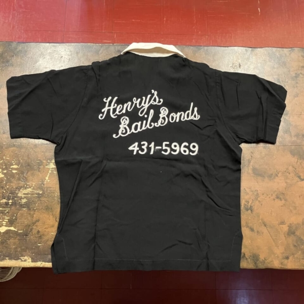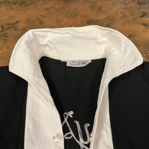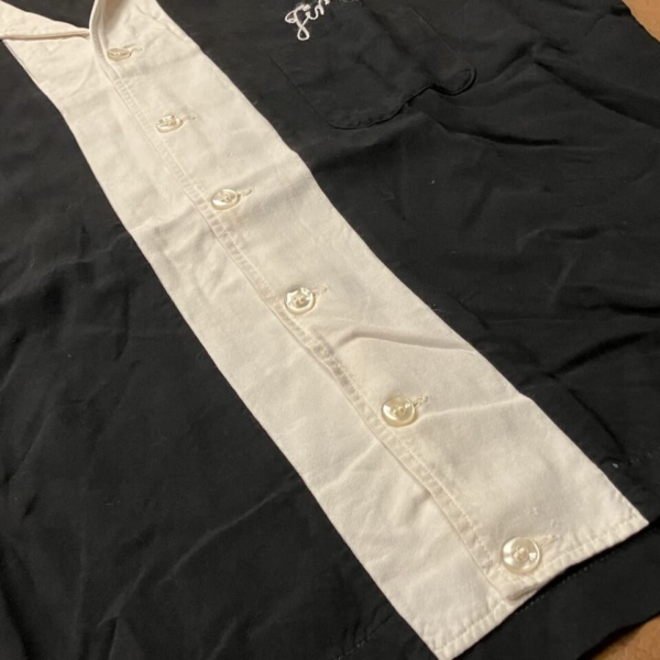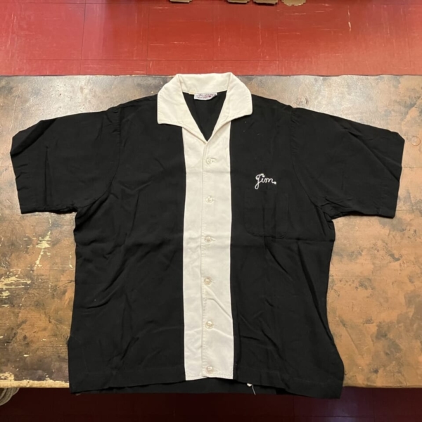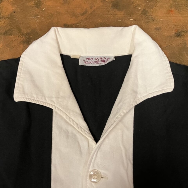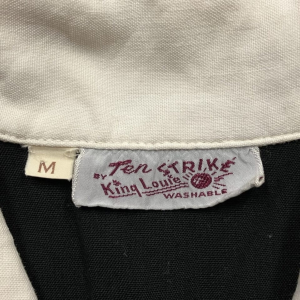商品 » 商品ジャンル » 服飾小物雑貨 » シャツ » King Louie(キングルイ)ヴィンテージ・ボーリングシャツ BK×WT 1950s M King Louie(キングルイ)ヴィンテージ・ボーリングシャツ BK×WT 1950s M 品番:clsh001 1点在庫有り ¥49,500 King Louie(キングルイ)のヴィンテージのボーリングシャツです。1950年代の「Ten STRIKE」タグで、ネーム、バック共にチェーン刺繍が施さた入手困難なレアな逸品です。素材はレーヨンで希少な黒色ボディに前立てと襟が白色で切替になっています。前立ての白い部分に多少の薄ヨゴレなど使用感は見られますが目立つダメージは無く、年代の割には良好な1着です。アメリカ製。サイズ:M(肩幅/40 身幅/54 着丈/60 袖丈/24cm)